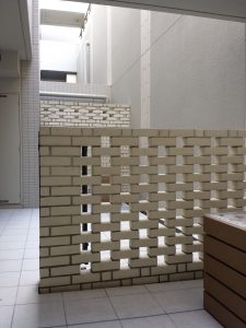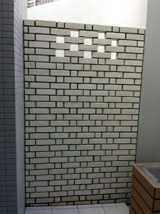地下1階部分に、間仕切りとして弊社の白レンガを使用していただきました。